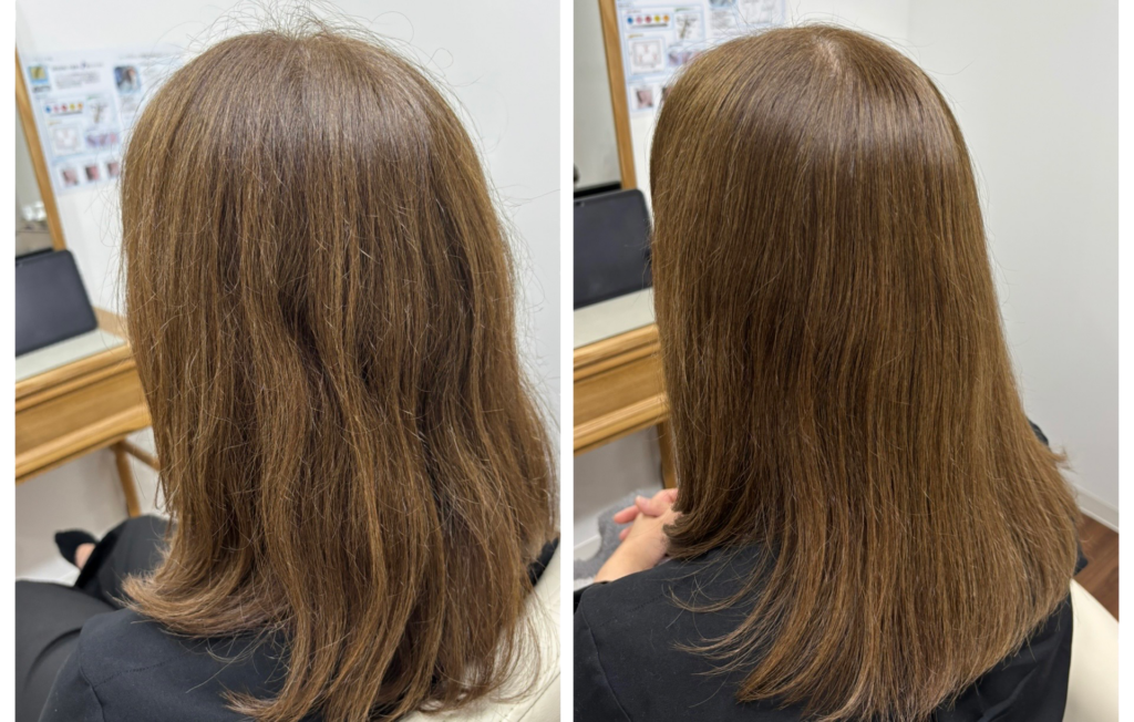 - 髪のパサつきやうねりが落ち着く